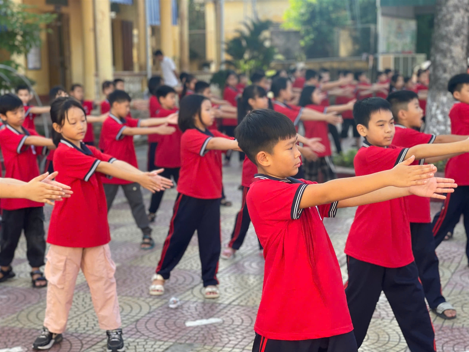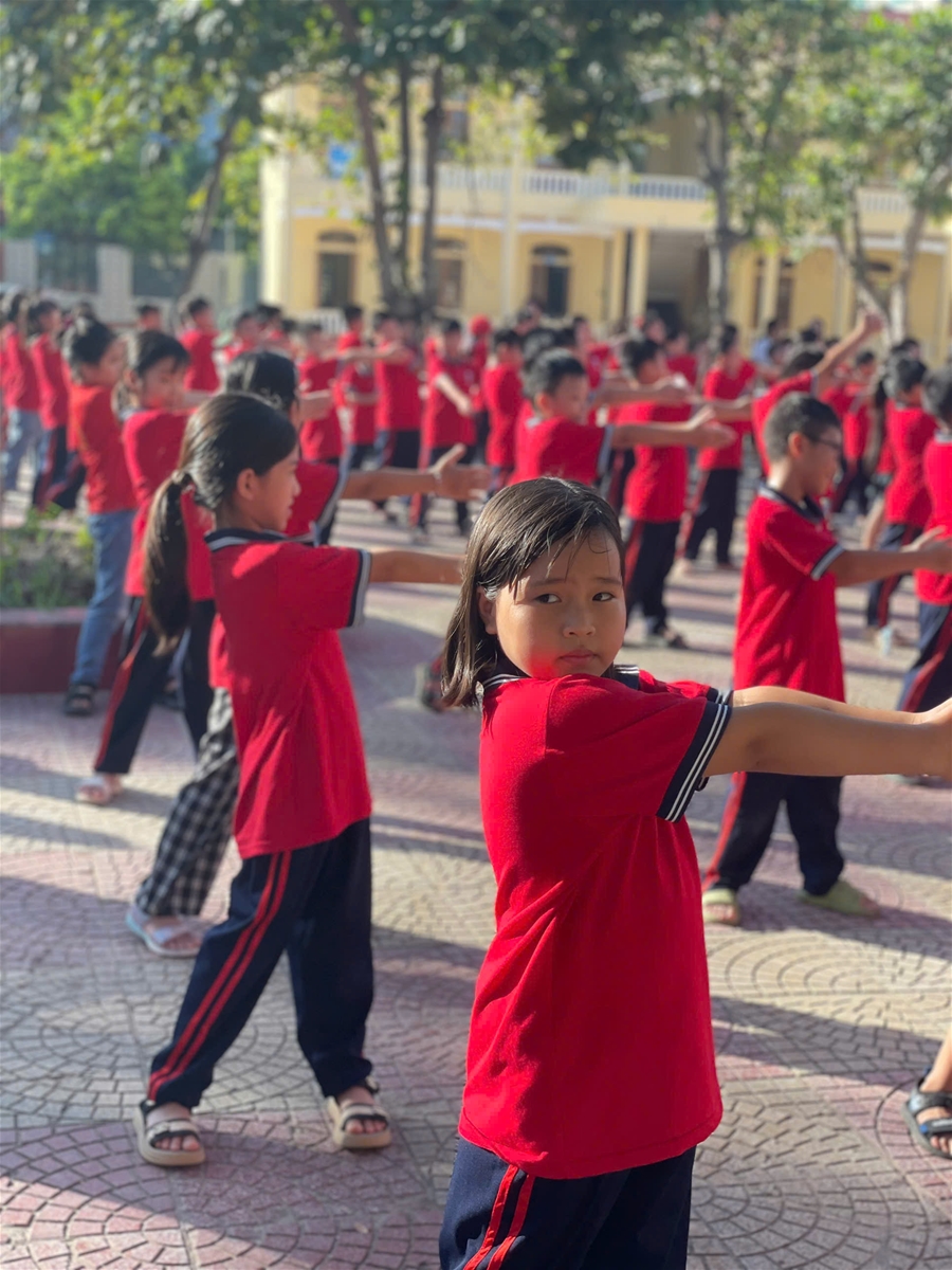 Đó chính là những khoảnh khắc đẹp nhất trong giờ thể dục giữa giờ. Không chỉ là vận động, đó là lời nhắc nhở về sức khỏe, là bài học về kỷ luật, sự kiên trì, và hơn hết là hạt mầm nuôi dưỡng tinh thần sống vui, sống khỏe trong từng em nhỏ.