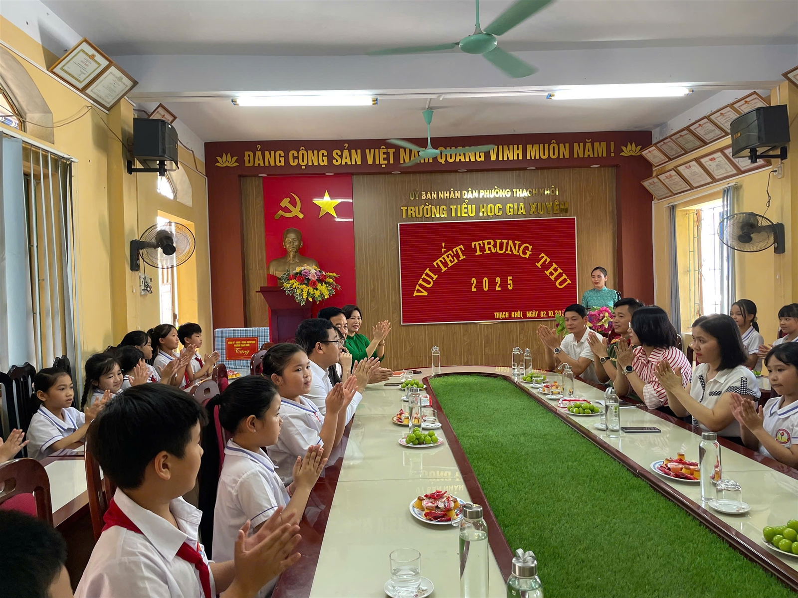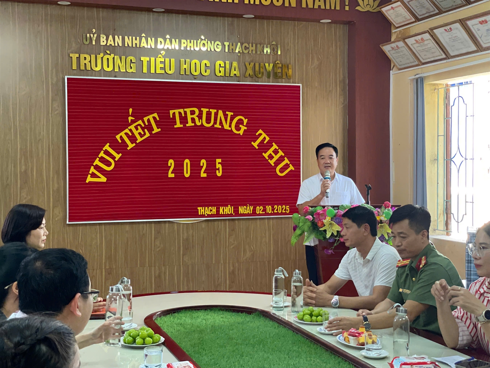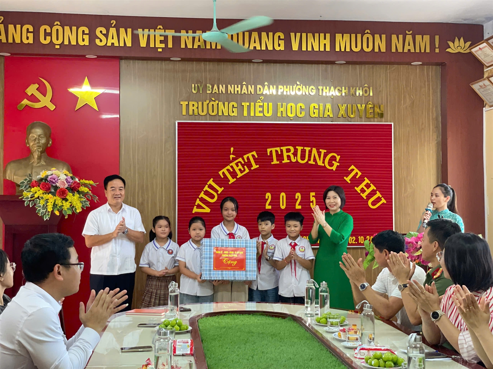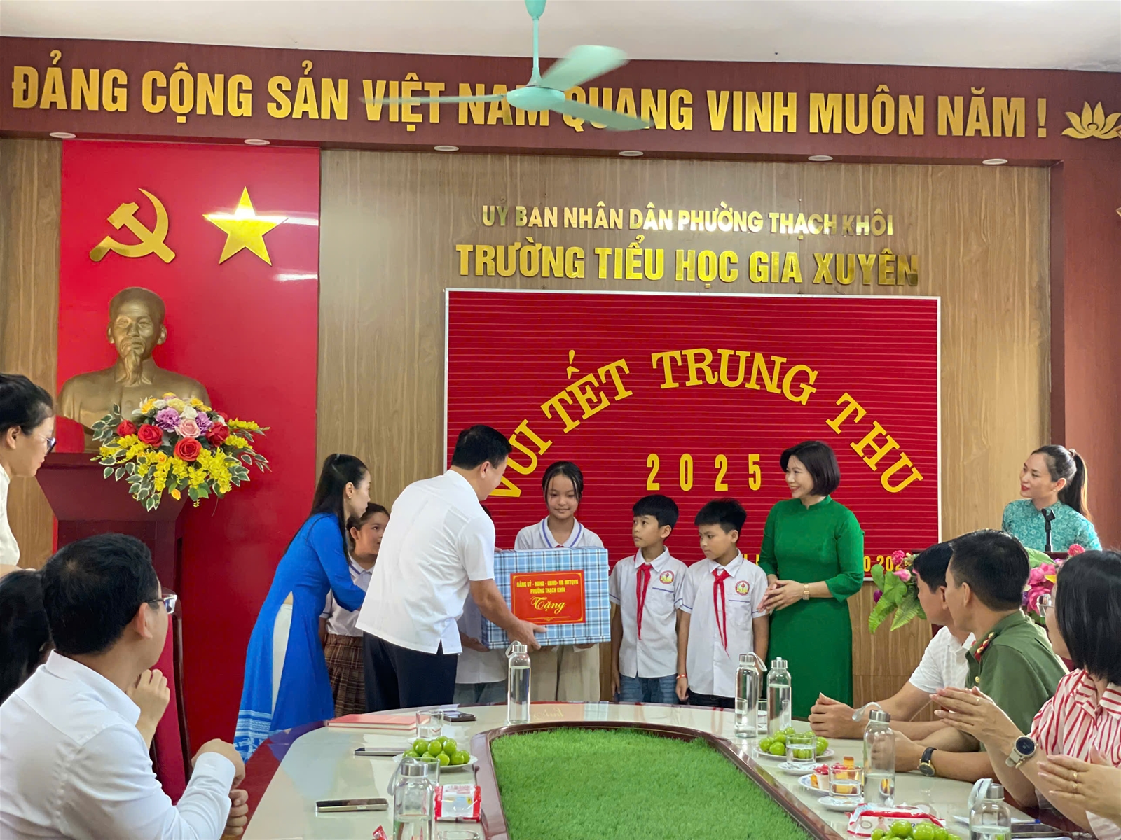 Nhân dịp Tết Trung thu năm 2025, các đồng chí lãnh đạo Đảng ủy, HĐND, UBND, UBMTTQ phường Thạch Khôi đã đến thăm, tặng quà và chia vui cùng thầy trò Trường Tiểu học Gia Xuyên.