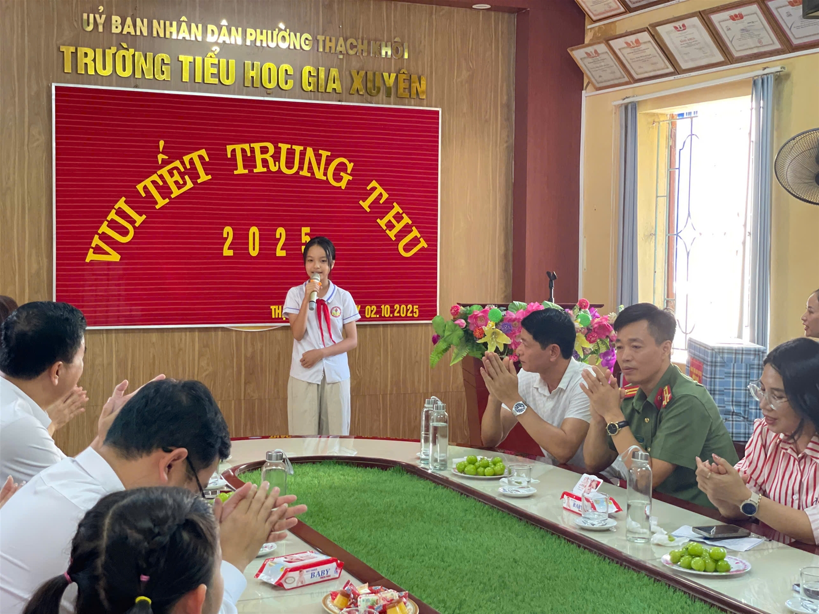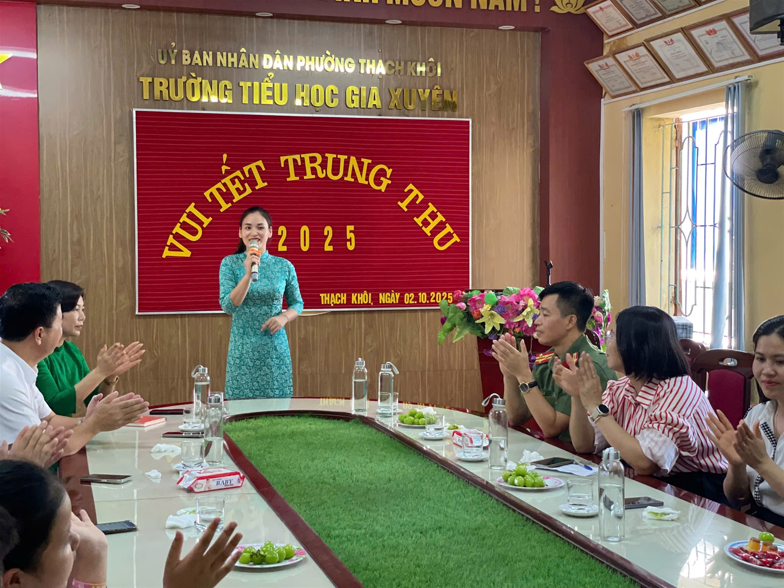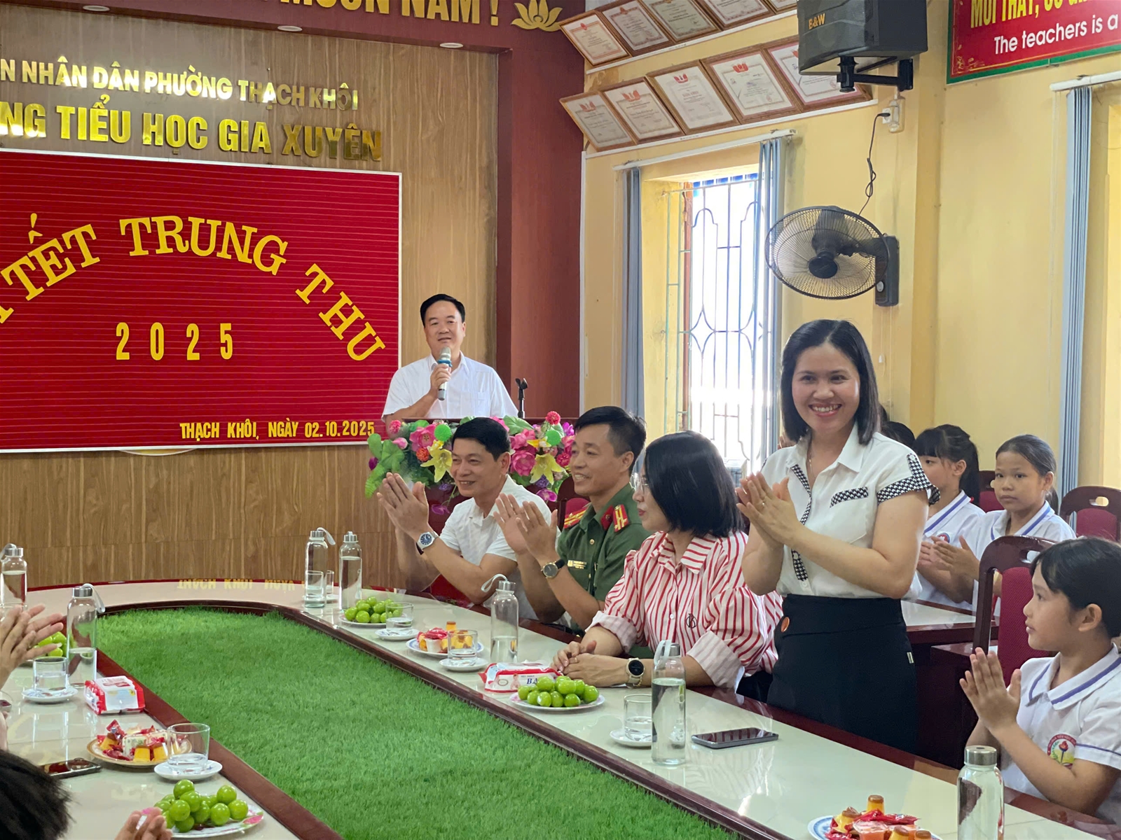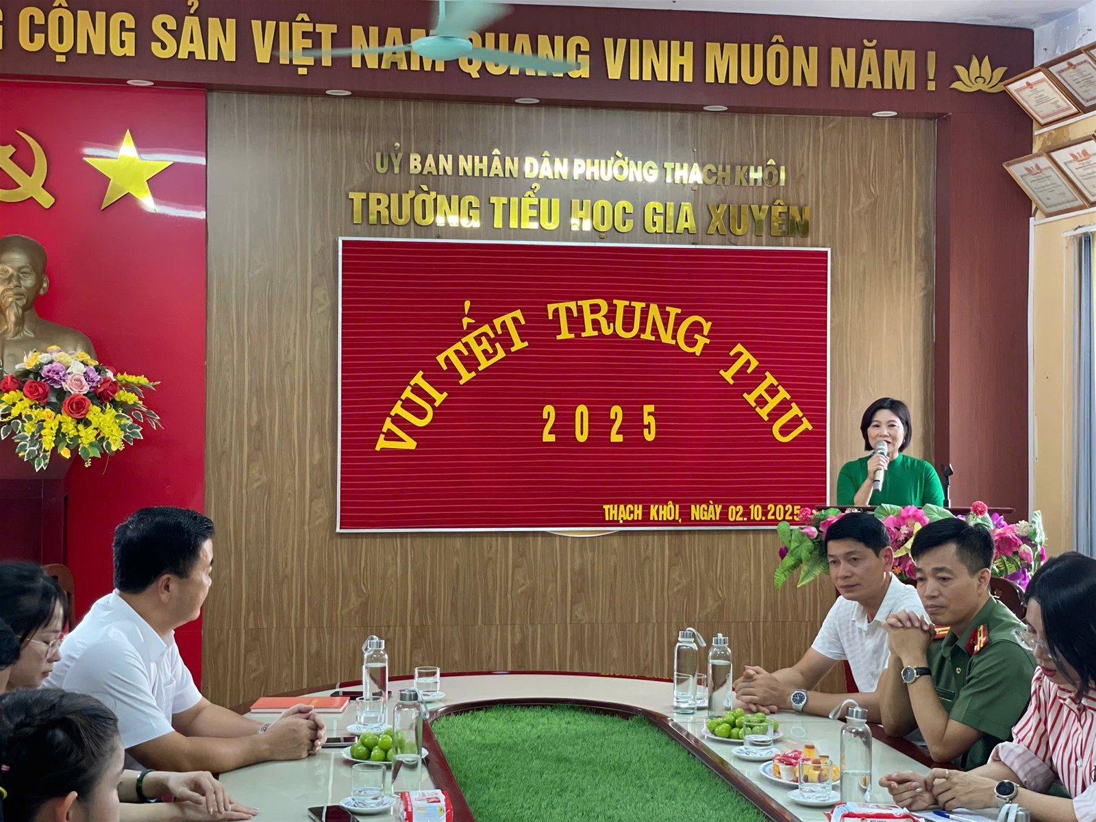 Nhân dịp Tết Trung thu năm 2025, các đồng chí lãnh đạo Đảng ủy, HĐND, UBND, UBMTTQ phường Thạch Khôi đã đến thăm, tặng quà và chia vui cùng thầy trò Trường Tiểu học Gia Xuyên.