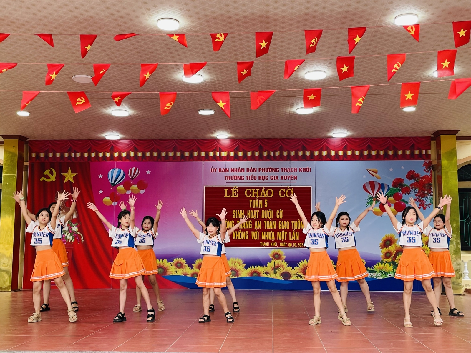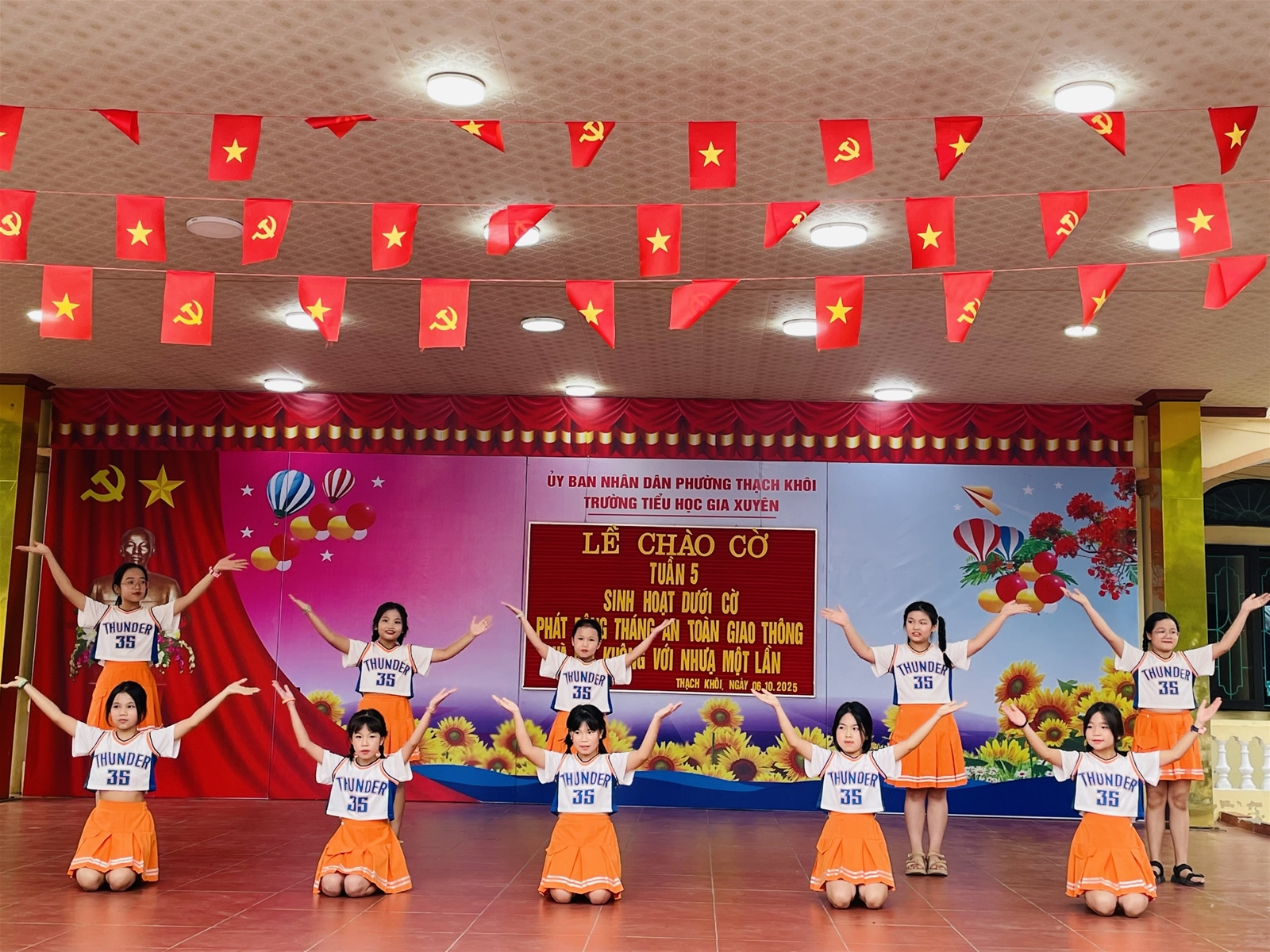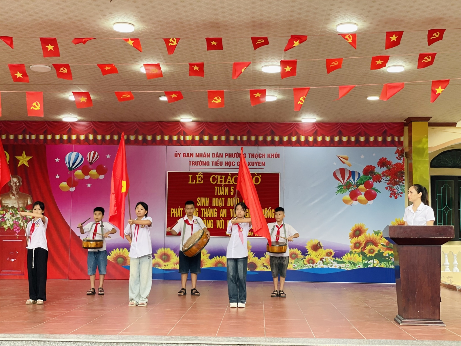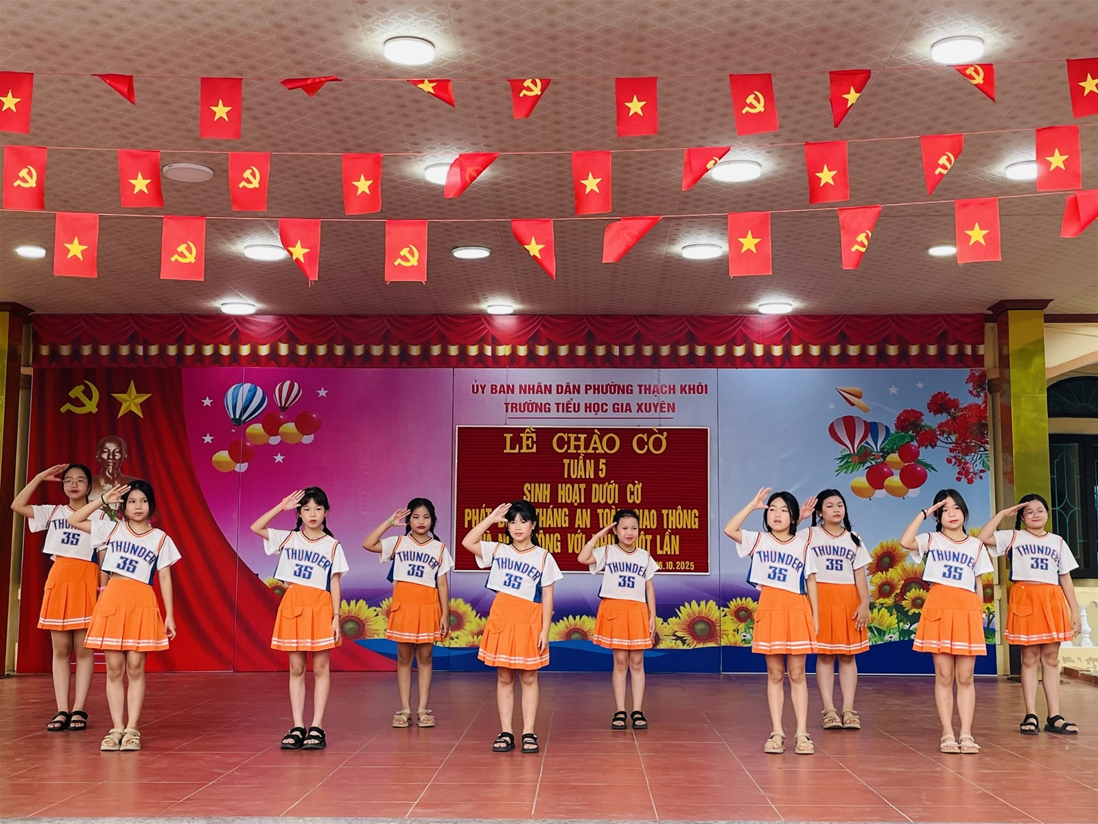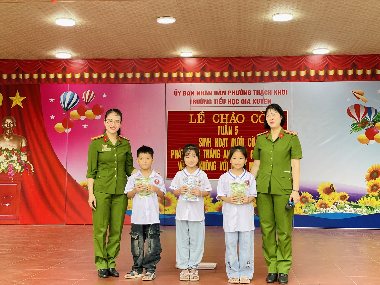 Nhằm nâng cao nhận thức về Luật An toàn giao thông, sáng ngày 06/10/2025, trong buổi sinh hoạt dưới cờ đầu tuần, trường Tiểu học Gia Xuyên đã phối hợp với Công an phường Thạch Khôi tổ chức tuyên truyền An toàn giao thông.