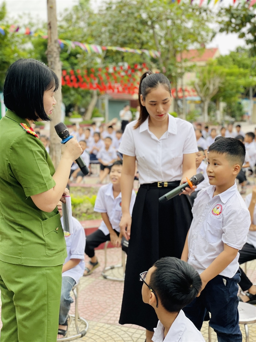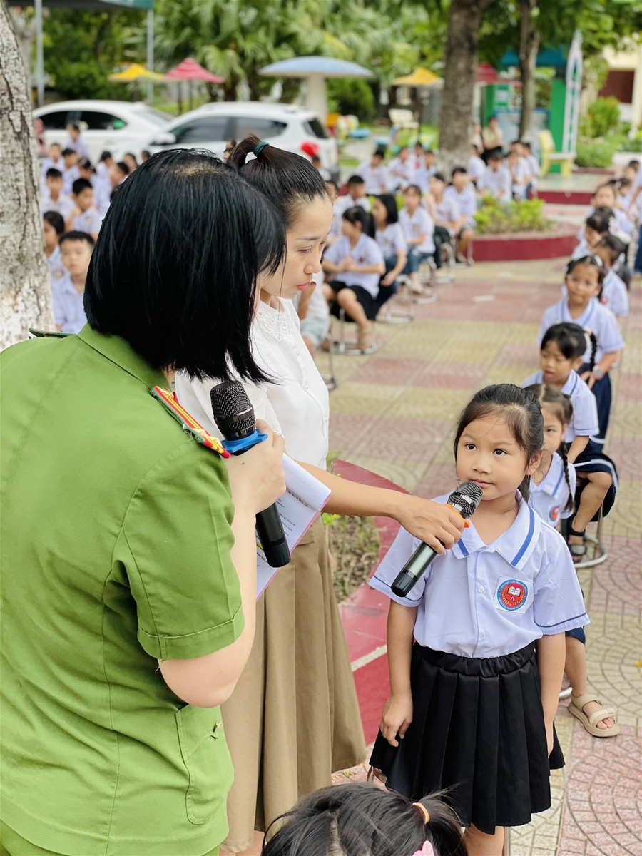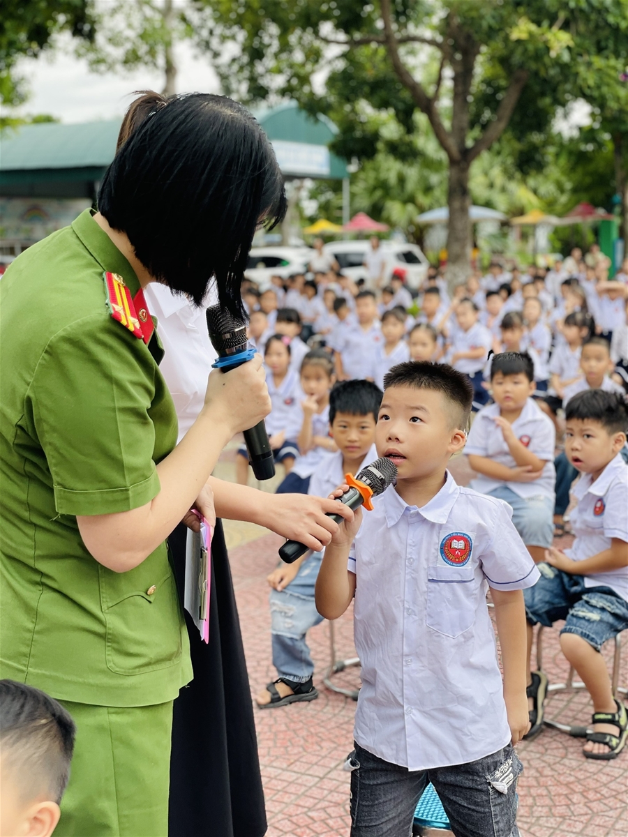 Tại chương trình, đại diện Công an phường Thạch Khôi đã tuyên truyền tới cán bộ giáo viên ,nhân viên và học sinh trong toàn trường những kiến thức cơ bản liên quan đến Luật An toàn giao thông đường bộ như: đi bộ đúng phần đường, không chạy nhảy dưới lòng đường, đội mũ bảo hiểm đúng cách, giữ khoảng cách an toàn khi tham gia giao thông… Nội dung được truyền tải sinh động qua trò chơi, câu hỏi đố vui, đáp nhanh có thưởng và tiểu phẩm minh họa, tạo hứng thú, dễ nhớ, dễ áp dụng vào thực tế.